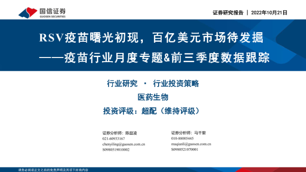 【国信证券】【20221021】疫苗行业月度专题&前三季度数据跟踪:RSV疫苗曙光初现,百亿美元市场待发掘-38页 行业研究
