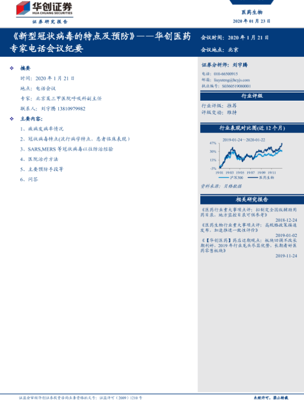 【华创证券】【20200123】新型冠状病毒的特点及预防-8页 会议纪要