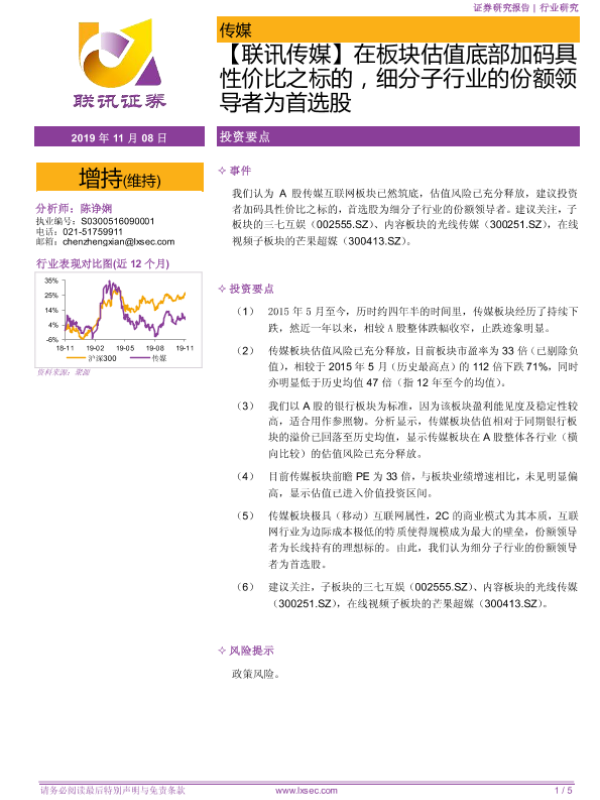 【粤开证券】【20191108】在板块估值底部加码具性价比之标的,细分子行业的份额领导者为首选股-5页 行业研究