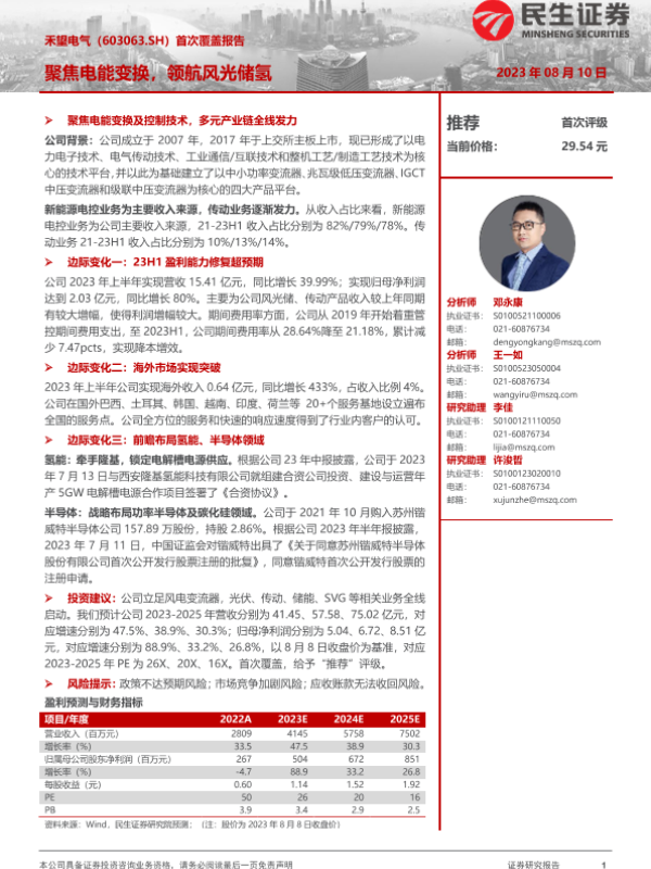 【民生证券】【20230810】20230810-民生证券-禾望电气-603063.SH-首次覆盖报告:聚焦电能变换,领航风光储氢-21页 行业研究