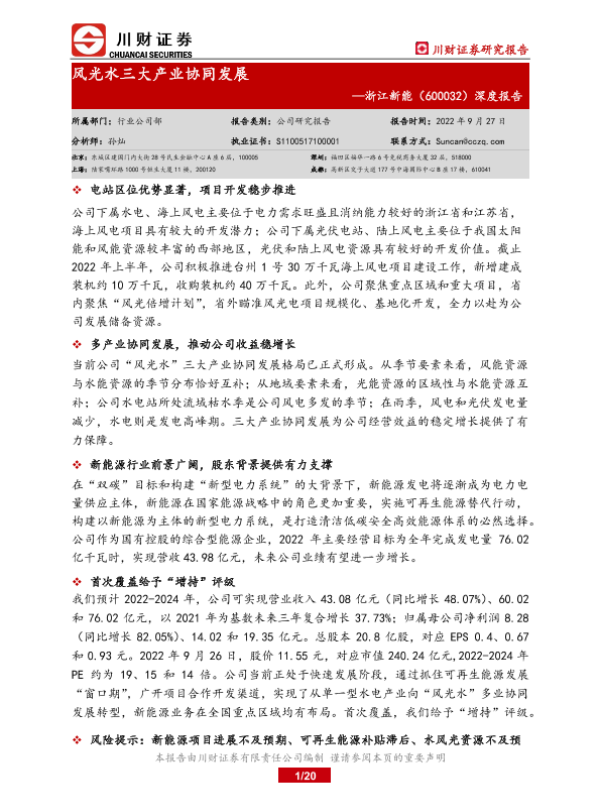 【川财证券】【20220927】风光水三大产业协同发展-20页 证券期货研究报告