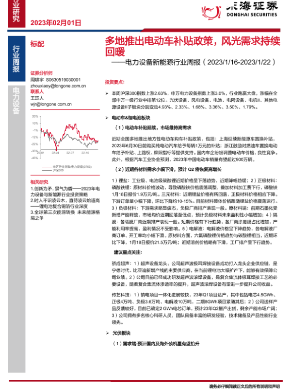 【东海证券】【20230201】20230201-东海证券-电力设备新能源行业周报:多地推出电动车补贴政策,风光需求持续回暖-34页 行业研究