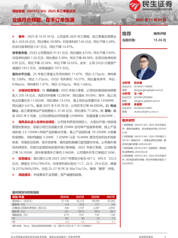 【民生证券】【20250829】明阳智能-2025年半年报点评-营收快速增长 多业务板块并进-3页 证券期货研究报告