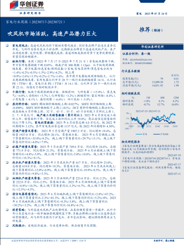 【华创证券】【20230724】家电行业周报:吹风机市场活跃,高速产品潜力巨大-21页 行业研究