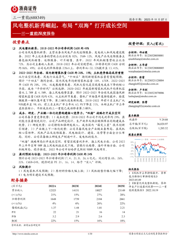 【浙商证券】【20231107】三一重能深度报告:风电整机新秀崛起,布局“双海”打开成长空间-30页 行业研究