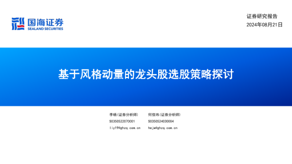 【国海证券】【20240821】基于风格动量的龙头股选股策略探讨-41页 行业研究