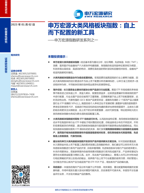 【申万宏源】【20230102】指数研发系列之一:申万宏源大类风格板块指数,自上而下配置的新工具-21页 行业研究