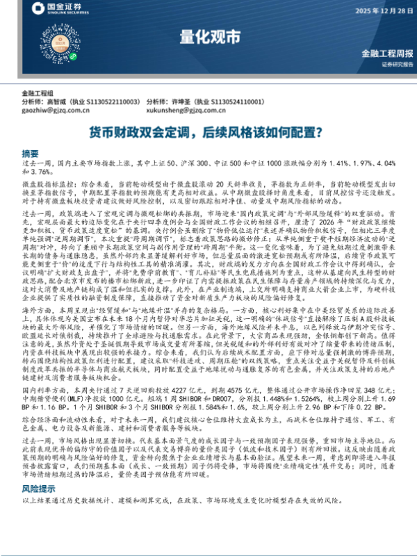【国金证券】【202512】货币财政双会定调,后续风格该如何配置?-12页 证券期货研究报告