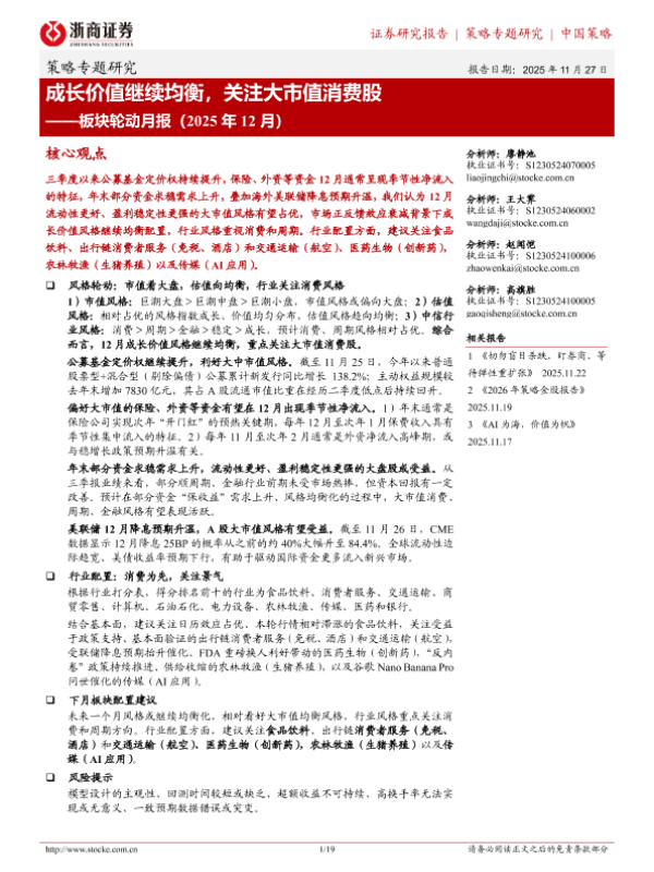【浙商证券】【202511】成长价值继续均衡,关注大市值消费股-19页 证券期货研究报告