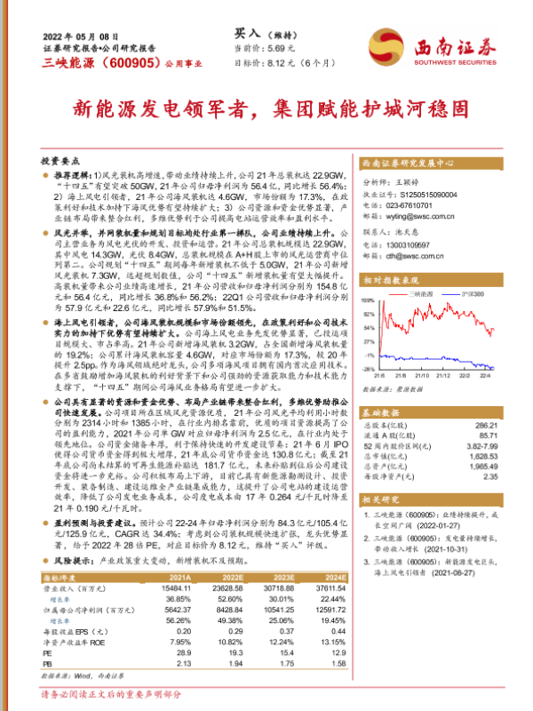 【西南证券】【20220508】20220508-西南证券-三峡能源-600905.SH-新能源发电领军者,集团赋能护城河稳固-31页 行业研究