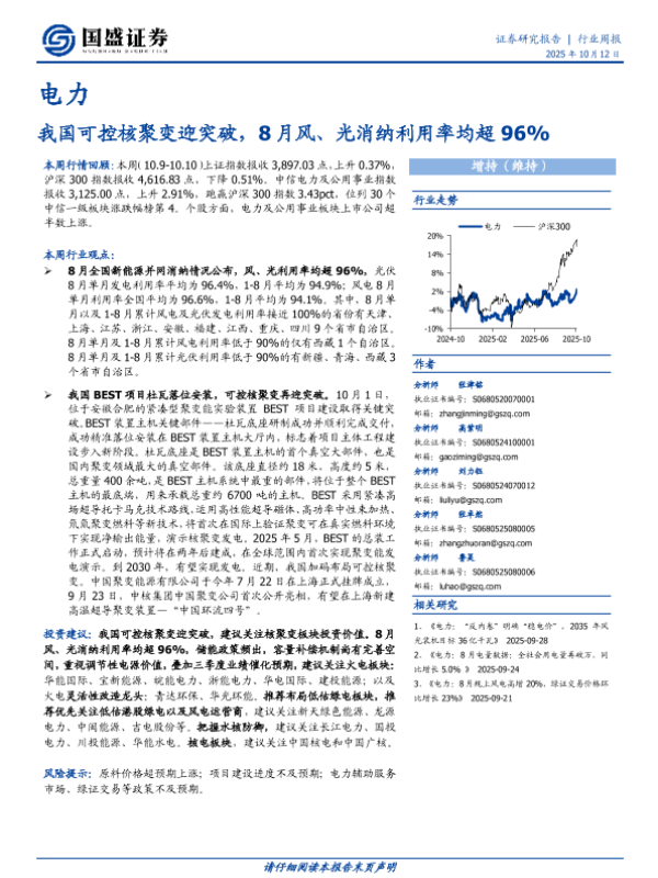 【国盛证券】【202510】我国可控核聚变迎突破,8月风、光消纳利用率均超96%-15页 证券期货研究报告
