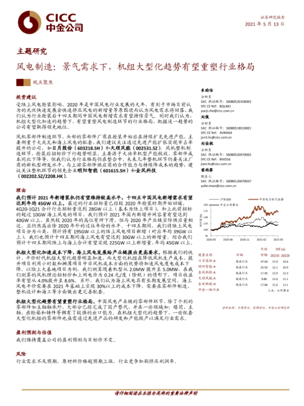 【中金公司】【20210513】风电制造:景气需求下,机组大型化趋势有望重塑行业格局-23页 行业研究