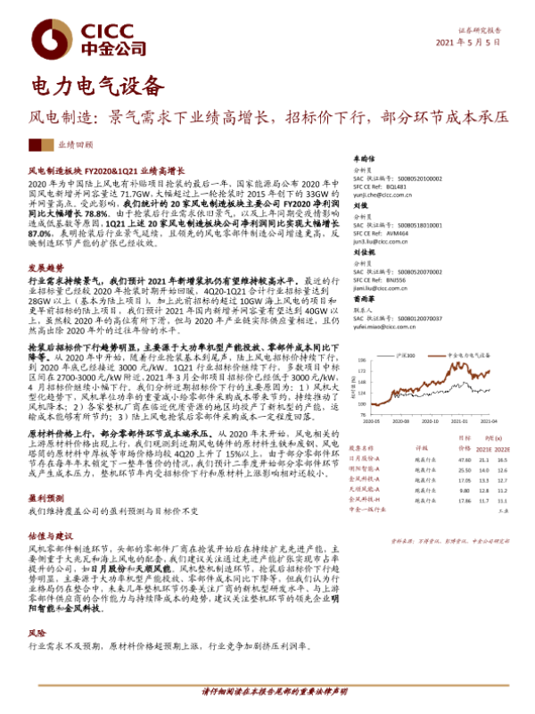 【中金公司】【20210505】风电制造:景气需求下业绩高增长,招标价下行,部分环节成本承压-7页 行业研究