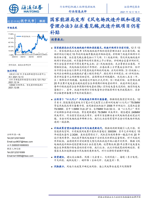 【海通证券】【20211215】国家能源局发布《风电场改造升级和退役管理办法》征求意见稿,改造升级项目仍有补贴-2页 行业研究