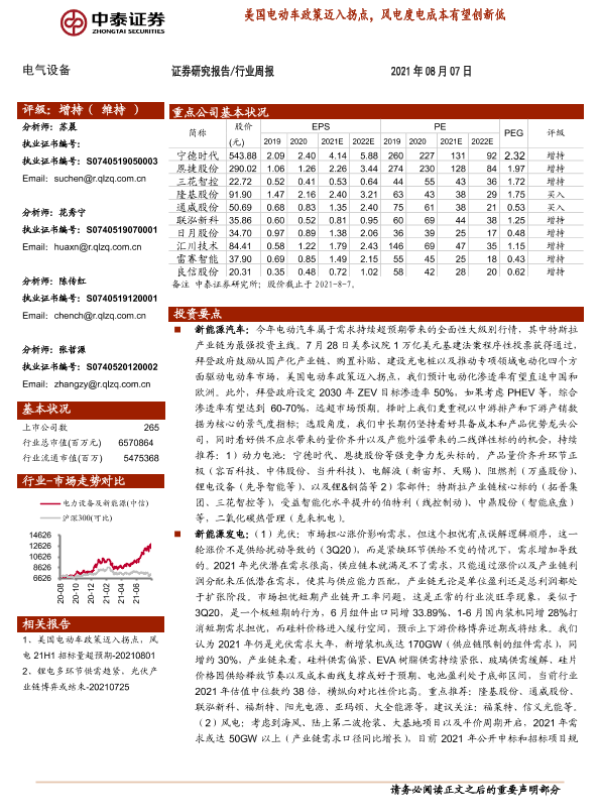 【中泰证券】【20210807】美国电动车政策迈入拐点,风电度电成本有望创新低-22页 行业研究
