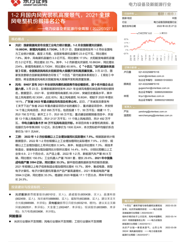 【东方证券】【20220327】电力设备及新能源行业周报:风电整机份额排名公布-16页 行业研究