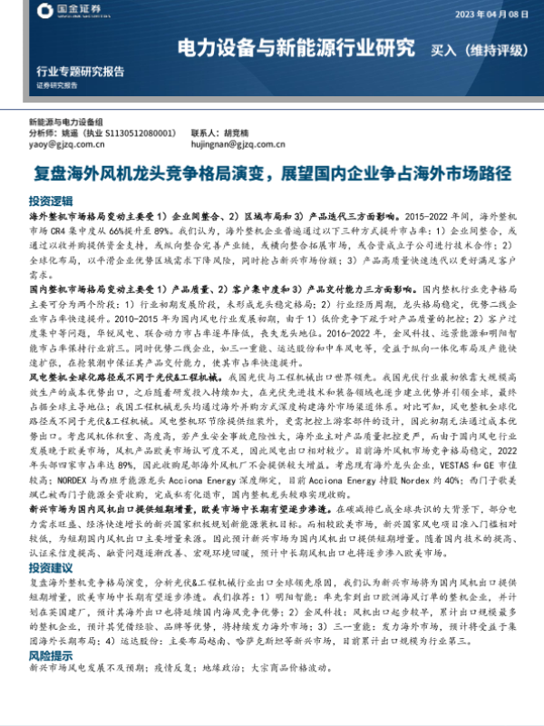 【国金证券】【20230408】电力设备与新能源行业研究:复盘海外风机龙头竞争格局演变,展望国内企业争占海外市场路径-22页 行业研究