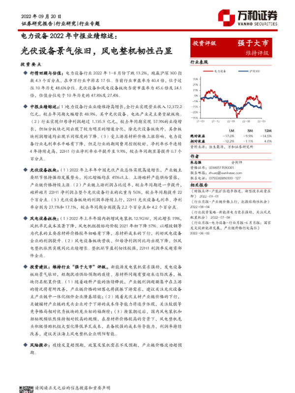 【万和证券】【20220920】电力设备行业2022年中报业绩综述:光伏设备景气依旧,风电整机韧性凸显-19页 行业研究