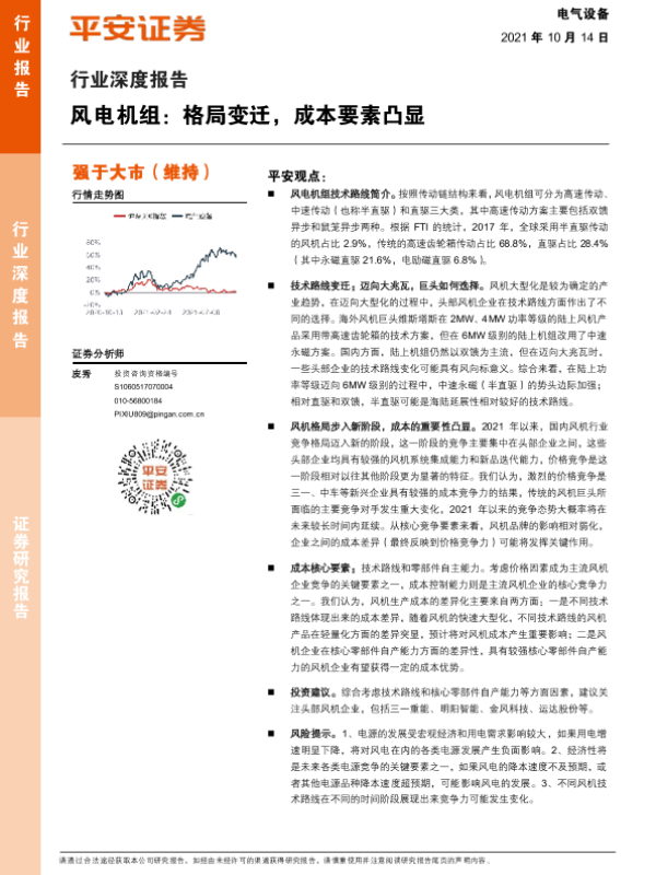 【平安证券】【20211014】电气设备行业深度报告:风电机组,格局变迁,成本要素凸显-23页 行业研究