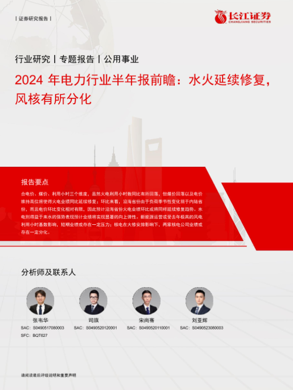 【长江证券】【20240708】2024年电力行业半年报前瞻:水火延续修复,风核有所分化-12页 行业研究