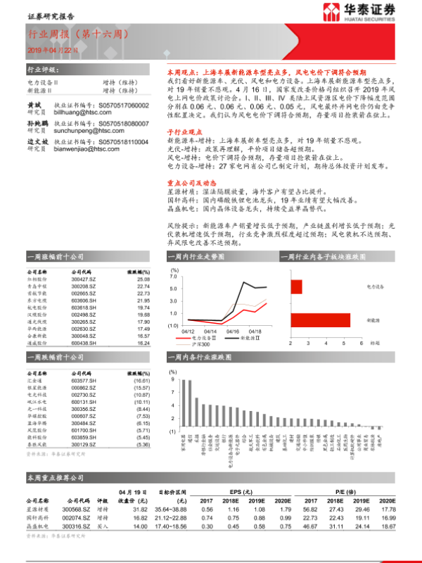 【华泰证券】【20190422】电力设备行业周报(第十六周)-24页 行业研究