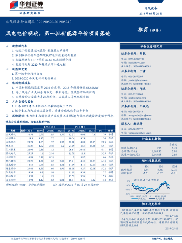 【华创证券】【20190526】电气设备行业周报:风电电价明确,第一批新能源平价项目落地-25页 行业研究