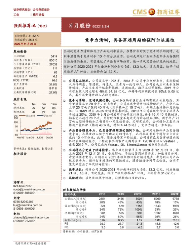 【天风证券】【20200525】日月股份-603218.SH-铸件行业龙头地位稳固,扩产提效借乘抢装浪潮-20页 行业研究
