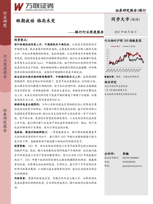 【万联证券】【20210806】银行行业深度报告:短期波动,格局未变-15页 行业研究
