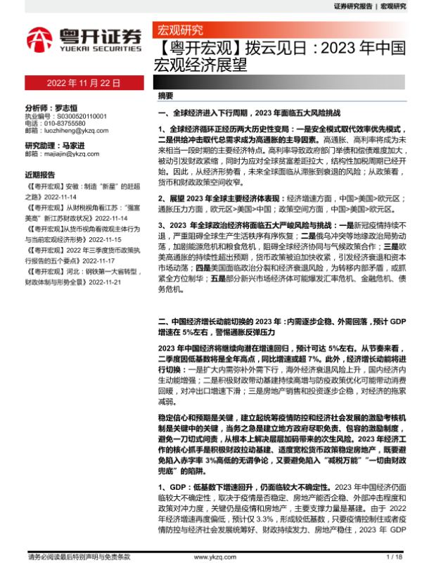 【粤开证券】【20221122】拨云见日:2023年中国宏观经济展望-18页 行业研究
