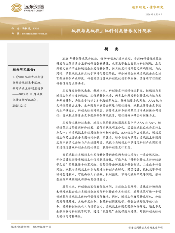 【远东资信】【202601】城投与类城投主体科创类债券发行观察-12页 证券期货研究报告