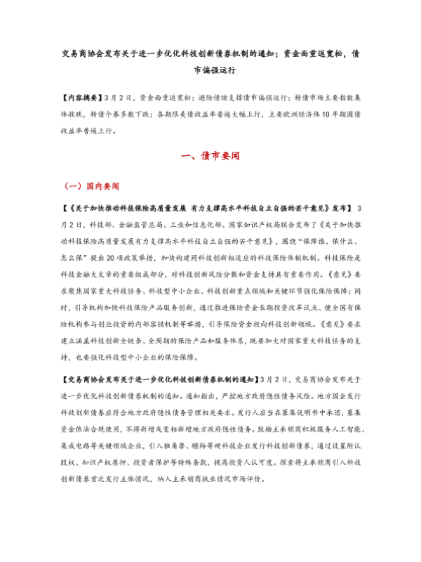 【东方金诚】【202303】交易商协会发布关于进一步优化科技创新债券机制的通知;资金面重返宽松_债市偏强运行-7页 政策文件