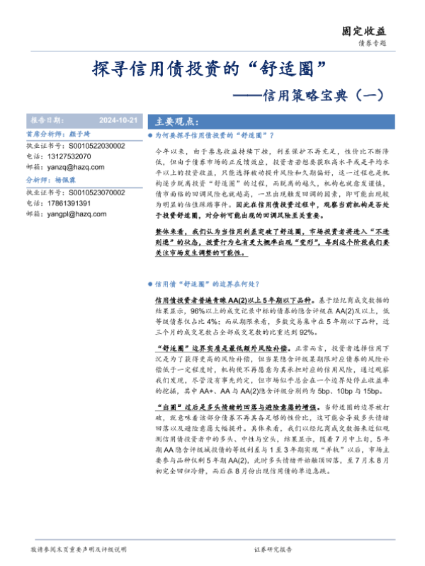 【华安证券】【20241021】信用策略宝典(一):探寻信用债投资的“舒适圈”-11页 行业研究