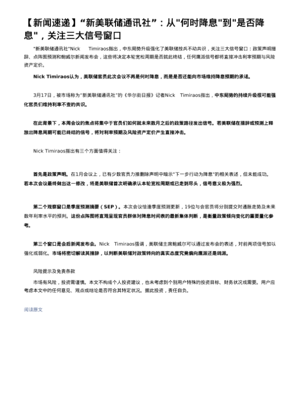 【英大期货】【202303】“新美联储通讯社”:从'何时降息'到'是否降息',关注三大信号窗口-1页 证券期货研究报告