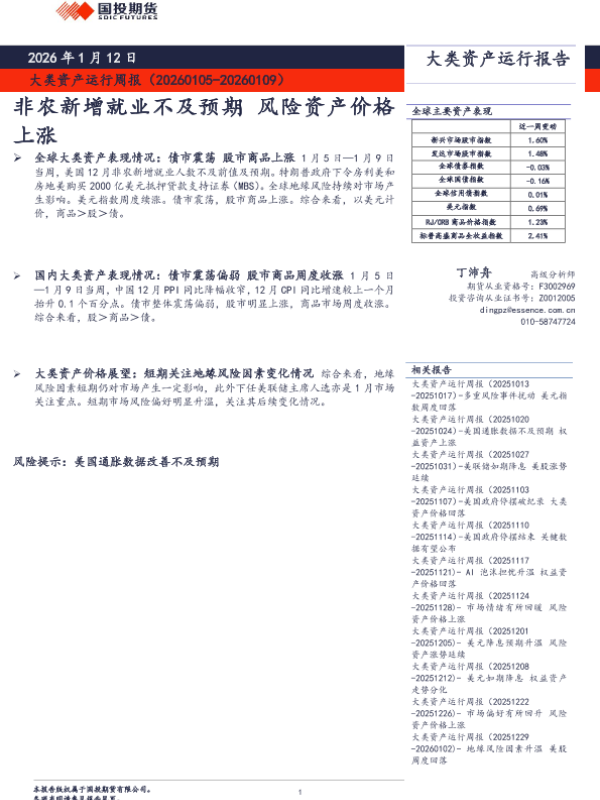 【国投期货】【202601】大类资产运行周报(20260105-20260109)-8页 证券期货研究报告