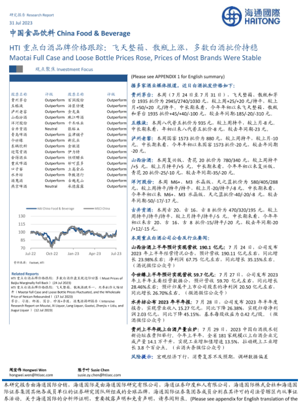 【海通国际】【20230731】HTI重点白酒品牌价格跟踪:飞天整箱、散瓶上涨,多数白酒批价持稳-13页 行业研究