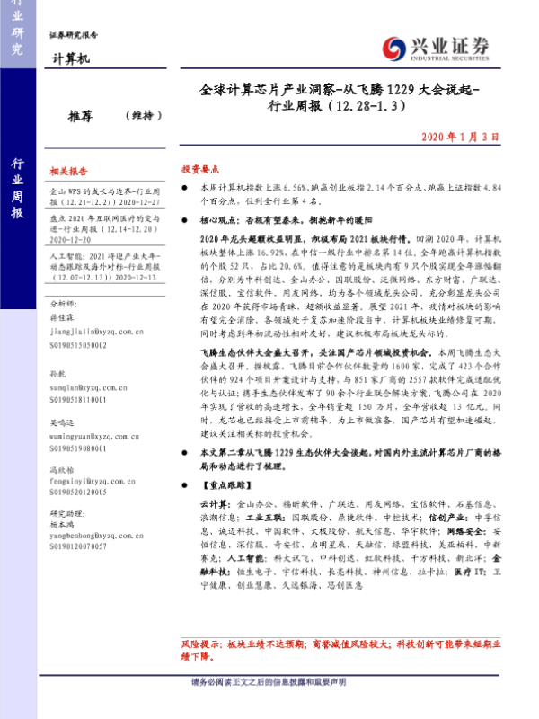 【兴业证券】【20210103】全球计算芯片产业洞察-从飞腾 1229大会说起-行业周报(12.28-1.3)-27页 行业研究