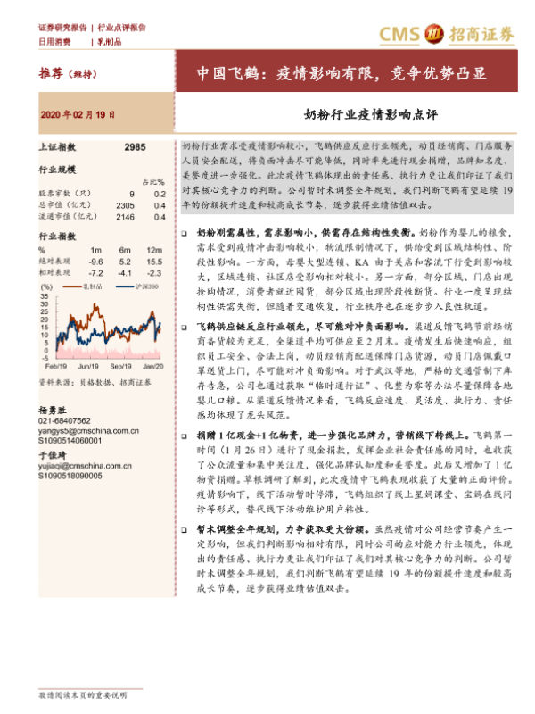 【海通证券】【20200219】奶粉行业疫情影响点评-中国飞鹤:疫情影响有限,竞争优势凸显-4页 行业研究