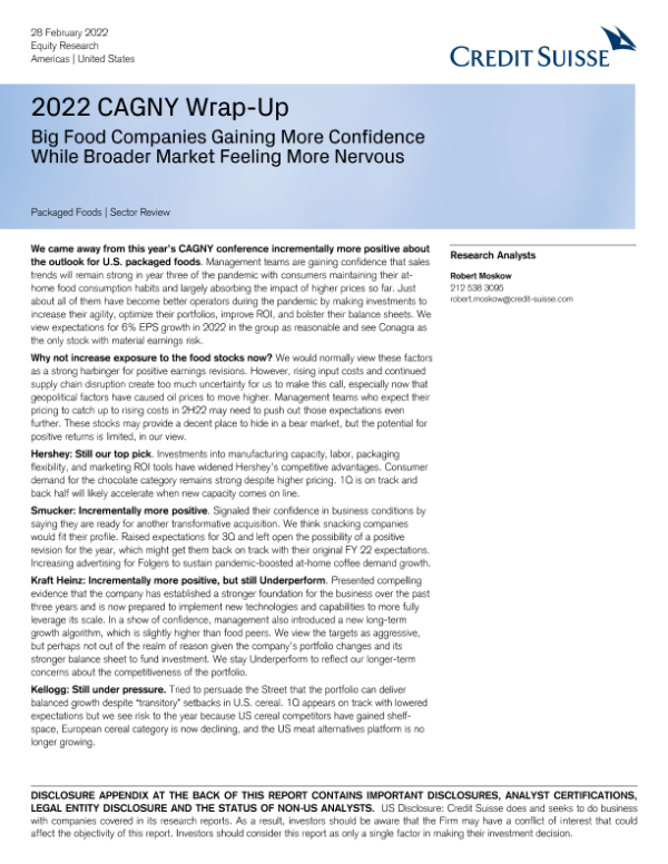 【瑞信】【20220228】瑞信-美股食品行业-大型食品公司信心增强,而整体市场感到更加紧张-29页 行业研究