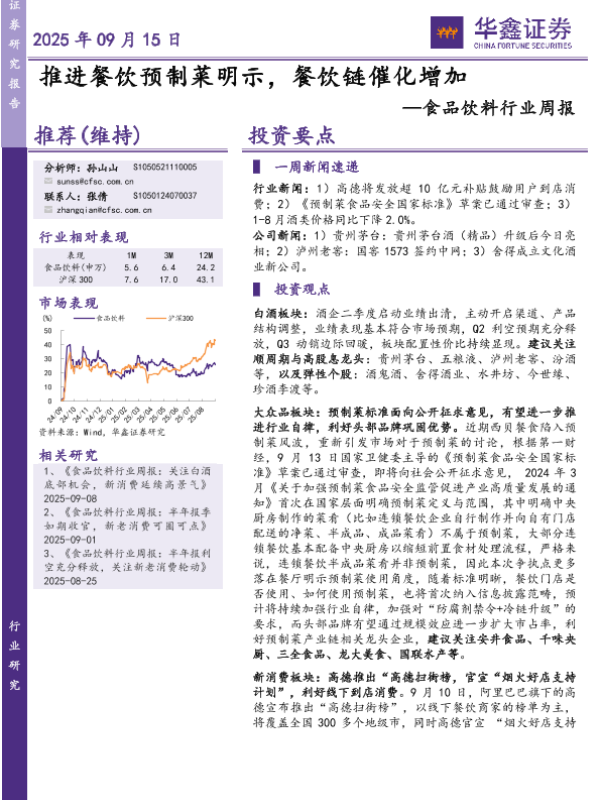 【华鑫证券】【202509】推进餐饮预制菜明示,餐饮链催化增加-17页 证券期货研究报告