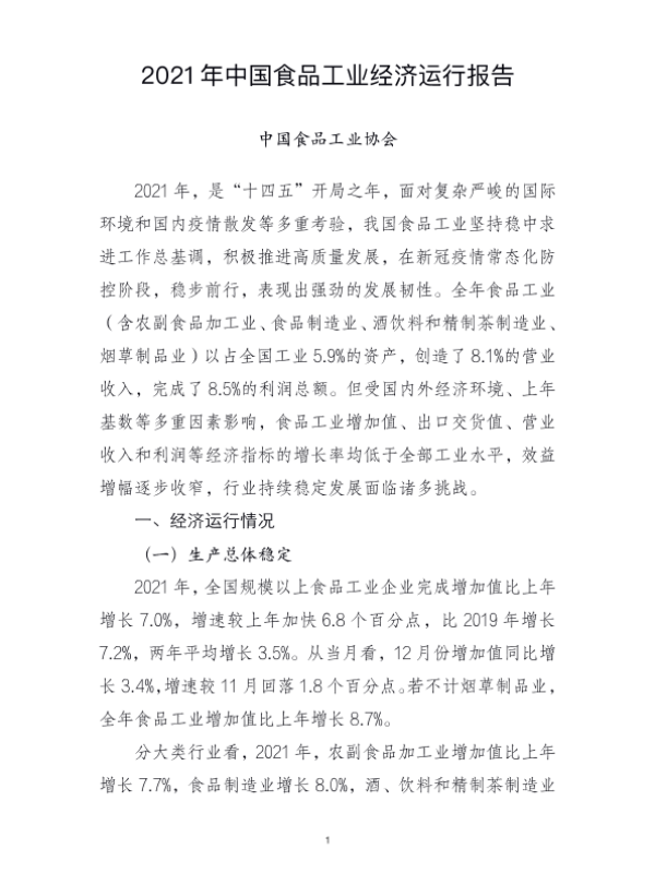 【中国食品工业协会】【2021】2021年中国食品工业经济运行报告-12页 行业研究