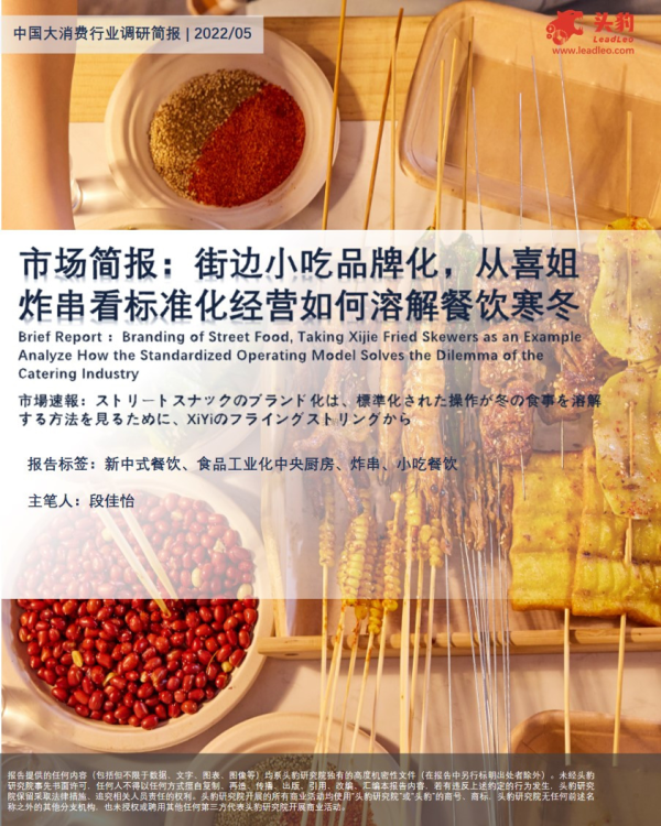 【头豹研究院】【20220607】市场简报:街边小吃品牌化,从喜姐炸串看标准化经营如何溶解餐饮寒冬-14页 市场调研