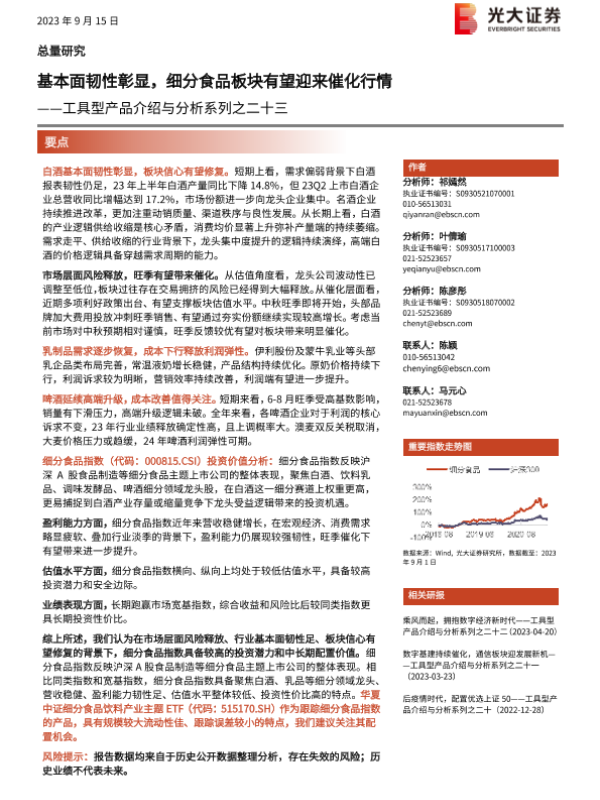 【光大证券】【20230915】基本面韧性彰显,细分食品板块有望迎来催化行情-17页 行业研究