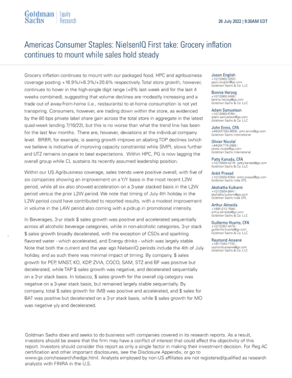 【Goldman Sachs】【20220726】First take Grocery inflation continues to mount while sales hold steady-17页 行业研究