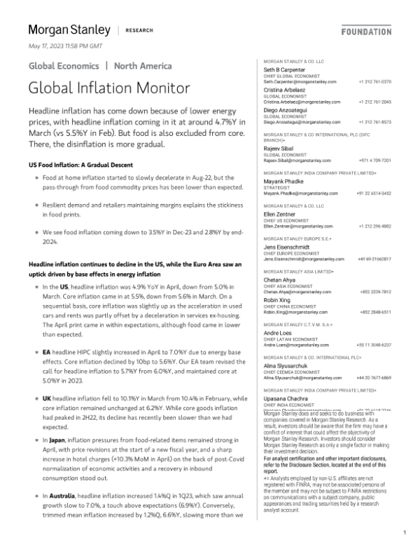 【Morgan Stanley】【20230517】Morgan Stanley Fixed-Global Economics Global Inflation Monitor-16页 行业研究