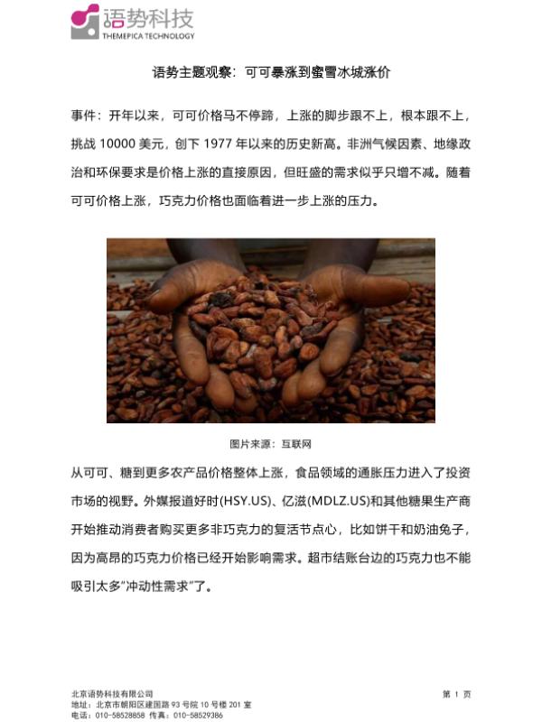 【北京语势科技有限公司】语势主题观察:可可暴涨到蜜雪冰城涨价-4页 行业研究