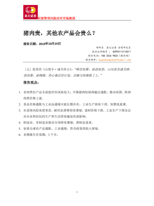 【英大证券】【20191019】猪肉贵,其他农产品会贵么?-19页 宏观策略