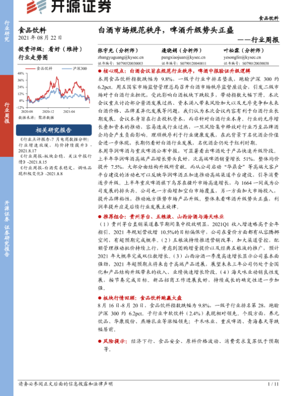 【开源证券】【20210822】食品饮料行业周报:白酒市场规范秩序,啤酒升级势头正盛-11页 行业研究