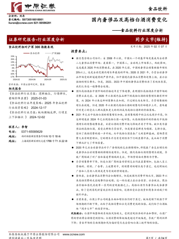 【中原证券】【20250207】食品饮料行业深度分析:国内奢侈品及高档白酒消费变化-24页 行业研究