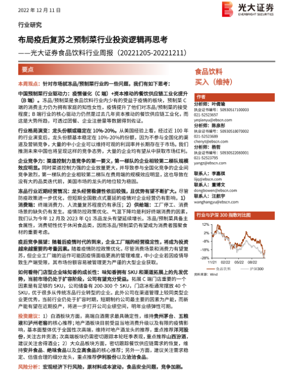 【光大证券】【20221211】20221211-光大证券-食品饮料行业周报:布局疫后复苏之预制菜行业投资逻辑再思考-12页 行业研究