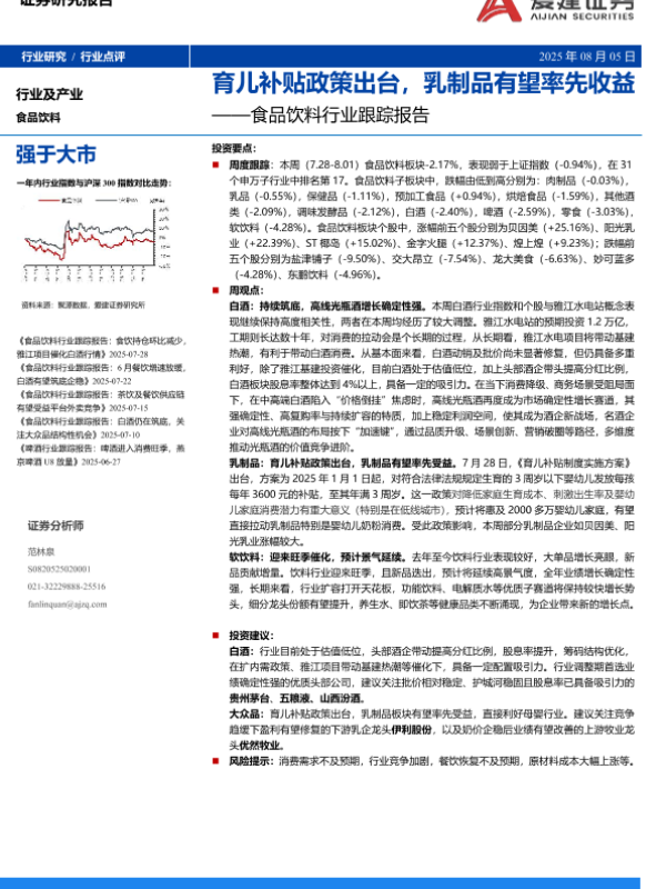 【爱建证券】【20250805】食品饮料行业跟踪报告:育儿补贴政策出台,乳制品有望率先收益-12页 行业研究
